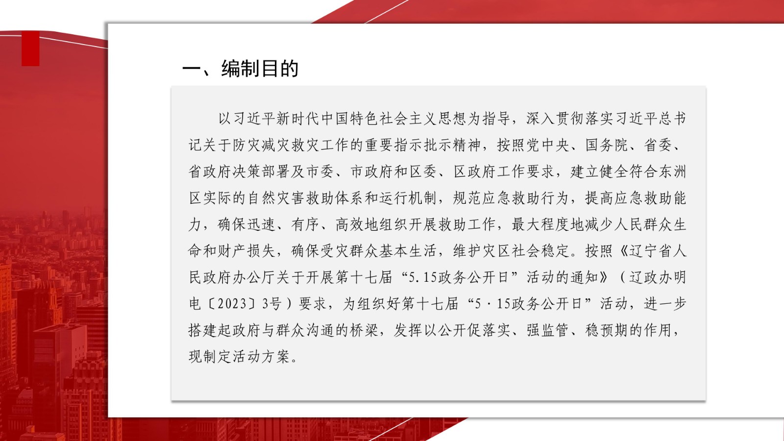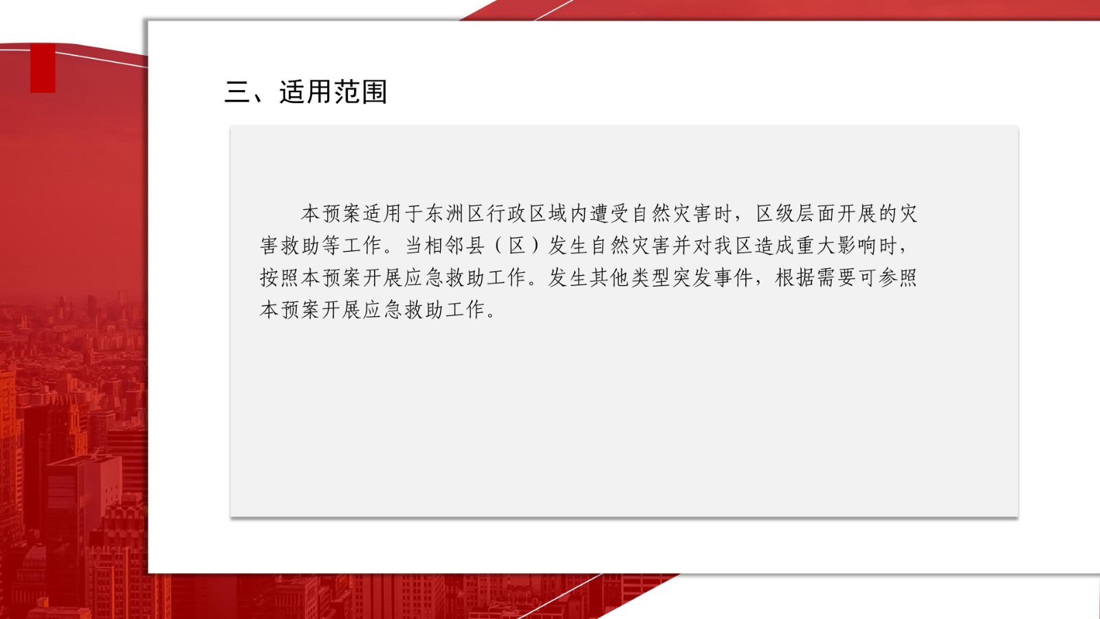 为深入贯彻落实习近平总书记关于防灾减灾救灾工作的重要指示批示精神,按照党中央、国务院、省委、省政府决策部署及市委、市政府和区委、区政府工作要求,东洲区制定了《抚顺市东洲区自然灾害救助应急预案》,现印发给你们,请认真抓好贯彻落实。按照《抚顺市东洲区自然灾害救助应急预案》有关规定,依法依规履行救灾救助工作责任,规范应急救助行为,提高应急救助能力,确保迅速、有序、高效地组织开展救助工作。