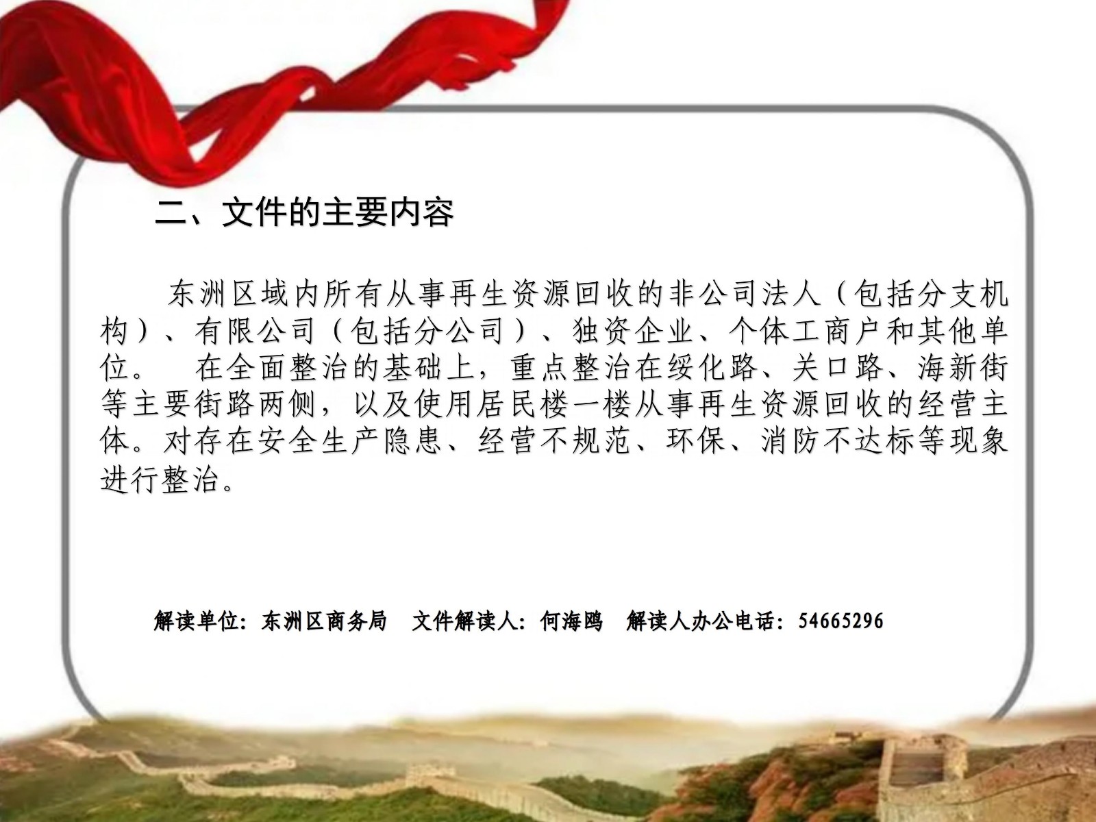 东洲区域内所有从事再生资源回收的非公司法人(包括分支机构)、有限公司(包括分公司)、独资企业、个体工商户和其他单位。